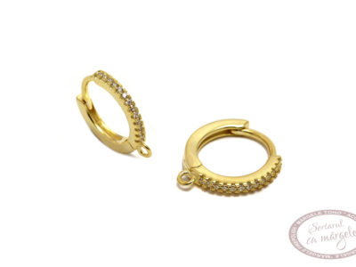 Tortita cercei 14×1,5mm, cu zirconiu, argint 925 placat cu aur, pereche