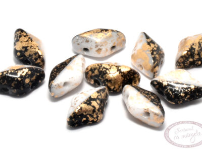 Margele GemDuo 8x5mm : Gold Splash - Opaque Black/White, 5gCod: PB379-85-DBW94401Dimensiuni: 8 X 5mm, diametrul gaurilor: 1mmSunt impachetate in plicuri de 5 gramePretul afisat se refera la un plic.Se poate asorta cu accesorii din gama Cymbal sau cu margele metalice DQ (click mai jos) :