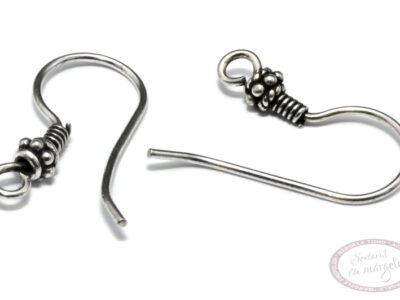 Tortita cercei 20mm, cu floricica 3mm si bucla, argint 925 antichizat, pereche