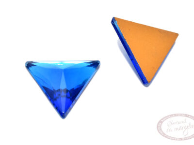 Produs din sticla fatetata, triunghi cu latura de 22mm. Partea din spate plata.