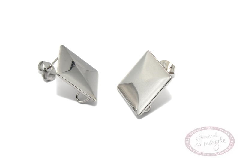 Baza cercei, 15x15mm, inox argintiu