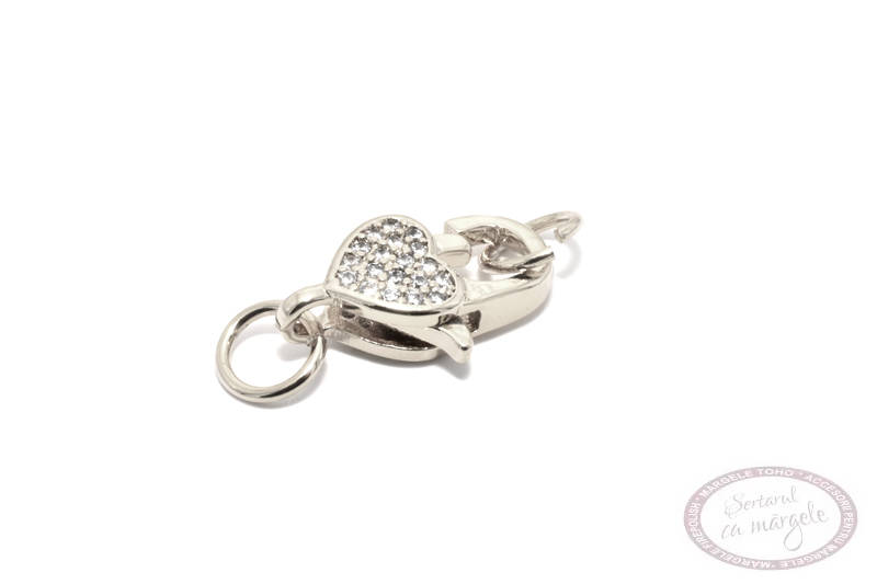 Inchizatoare lobster cu zirconiu, inimioara 16x10mm, placata cu rodiu