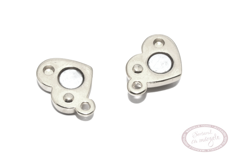 Inchizatoare magnetica DQ, inimioara, 14x11mm, placata cu argint 999 antichizat