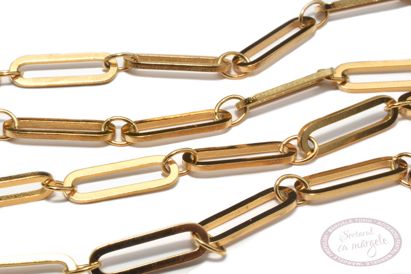 Lantisor cu zale ovale, 14.5×4.5×1.2x1mm, inox placat cu aur, 50cm