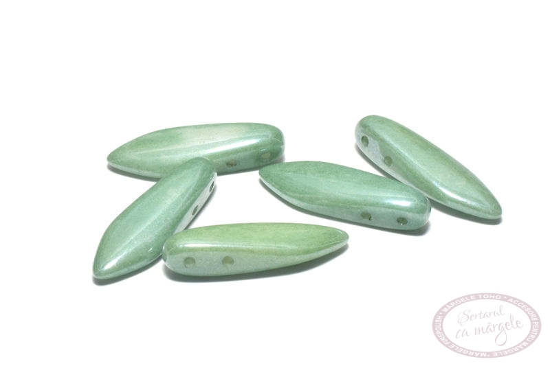 Margele Dagger, 2 gauri, 5x16mm, Luster-Metallic Green, 10buc