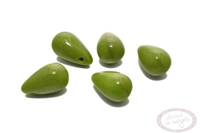 Margele Drops Opaque Olive 6x10mm, 10buc