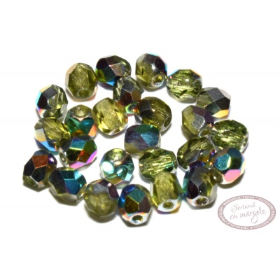 Margele din sticla Cehia, Fire Polish (slefuite / fatetate), Olivine – Vitral, Cod: FP1-04-V50230