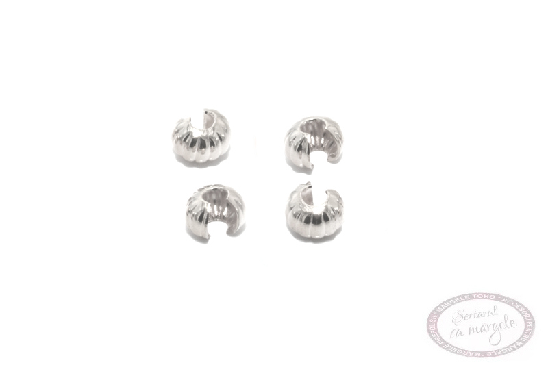 Margele mascare noduri, 4mm, striate, placate cu argint, 12 buc