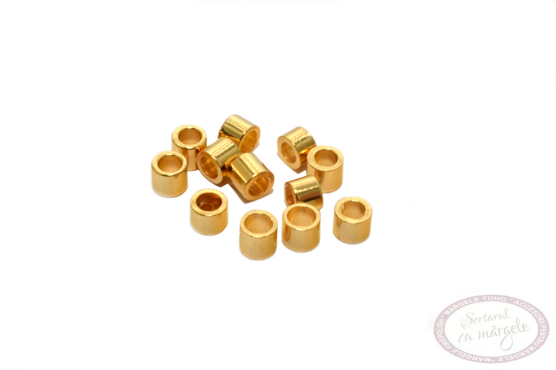 Margele mascare noduri tub 2,5x2mm, placate cu aur 24K, 20 buc