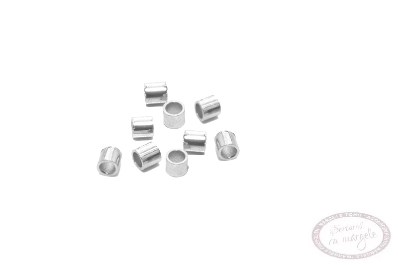 Margele mascare noduri tub 2x2mm, placate cu argint , 20 buc