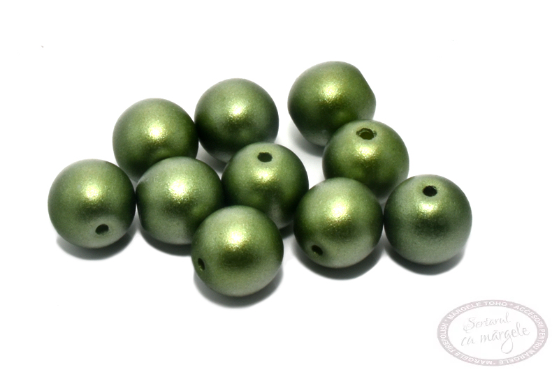 Margele presate rotunde 6mm : Pearl Coat – Olive, 30 buc