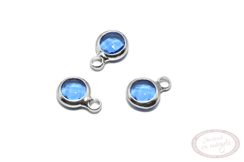 Ornament (charm) Designer Quality 10x7mm cu cristal fatetat 6mm, Denim Blue Crystal Silver, placat cu argint