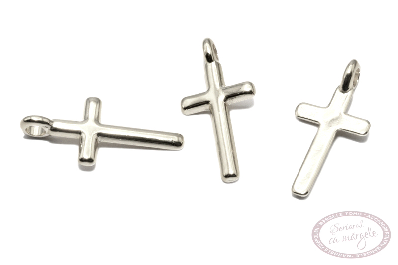 Ornament (charm) metalic Designer Quality cruciulita, 16x8mm, placat cu argint 999 antichizat