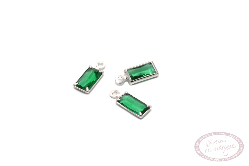 Ornament (charm) DQ cu cristal fatetat 9x3mm, Classic Green-Silver, placat cu argint