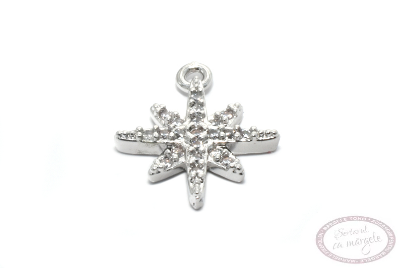 Ornament (charm) steluta, cu zirconiu, placata cu argint antichizat
