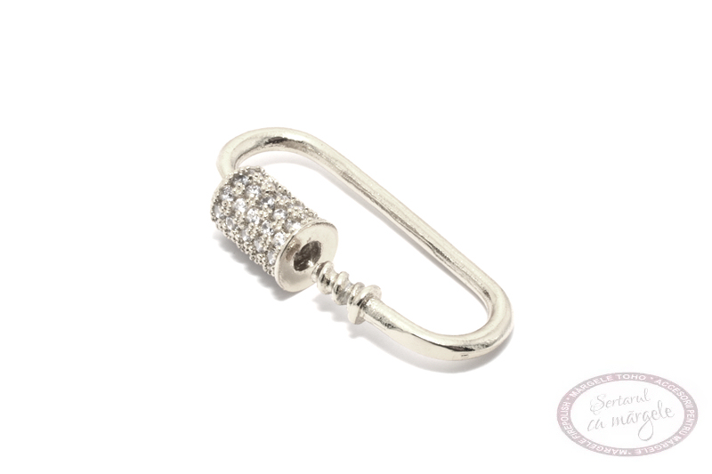 Pandantiv oval/ Inchizatoare, cu filet, 25x12mm, cu zirconiu, placat cu rodiu