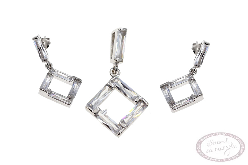 Set cercei cu pandantiv 20mm din argint 925, romb cu zirconiu