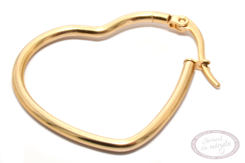Tortita cercei 33x28mm inimioara, inox auriu, pereche