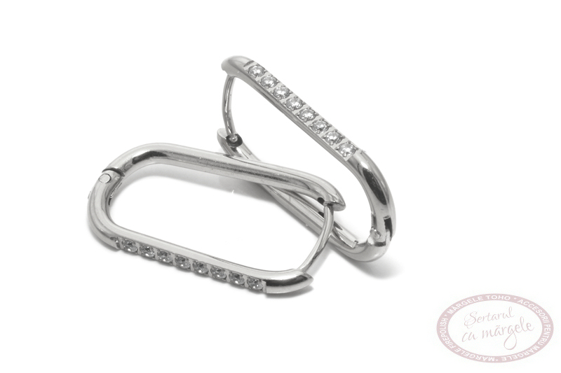 Tortita „creole” ovala cu zirconiu, 23x13mm, inox argintiu, pereche