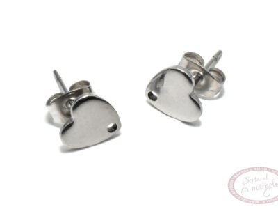Baza cercei DQ inimioara 8mm, cu nut, inox argintiu, pereche