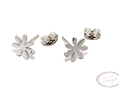 Baza cercei 9mm floricica, inox argintiu, cu nut, pereche
