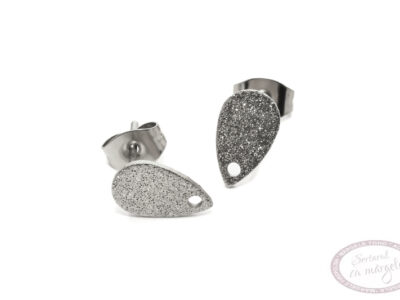 Baza cercei dreptunghi texturat 25x17mm inox argintiu, pereche
