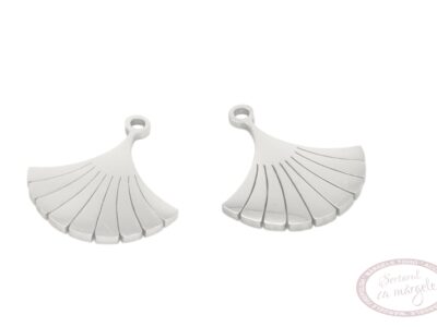 Ornament (charm) 16x14mm Ginkgo leaf, inox argintiu